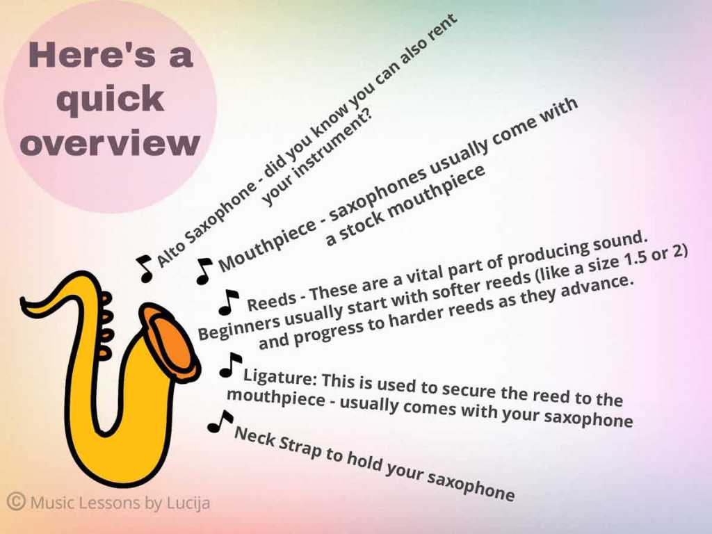 That’s it for the start. If you borrow the saxophone you will most likely get everything you need to start the lessons, you will only need to purchase some additional reeds and that will be it.